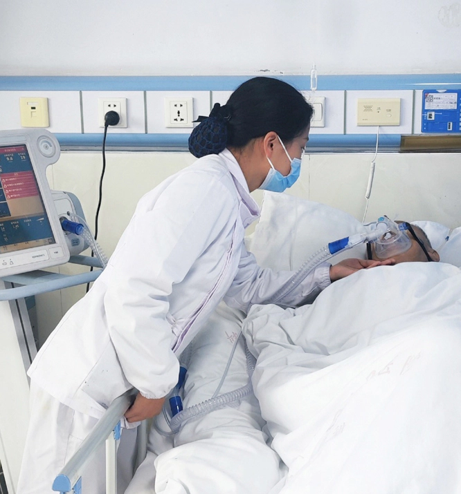 她持续守在床旁,耐心引导,以平稳的语调与沉着的姿态,为患者构筑起一道安全的精神屏障。渐渐地,王爷爷原本急促紊乱的呼吸,开始与呼吸机的送气节奏同步。从最初的烦躁抗拒,到逐渐平复,最终他在呼吸机的辅助下安然入眠。小彭注视监护仪上趋于稳定的生命体征,悄然退出病房。窗外,夜色渐褪,晨光初现。