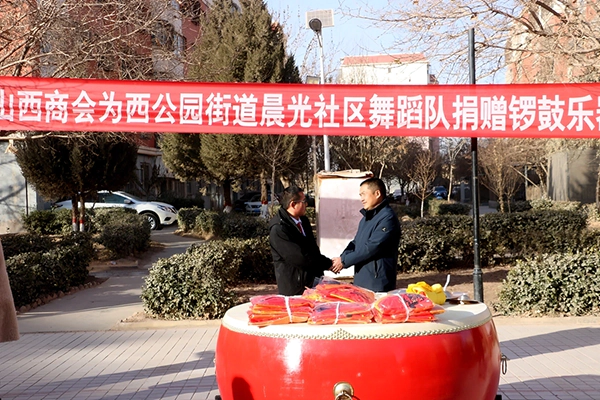 新疆讯( 陈会林报道)鼓点铿锵振人心,雅乐盈盈暖邻里。2月5日上午,喀什市西公园街道晨光社区文化广场鼓乐齐鸣、欢声阵阵,喀什山西商会在此举行爱心捐赠仪式,向社区舞蹈队赠送价值2万余元的专业锣鼓乐器及演出服装,为基层文化建设注入强劲动力。